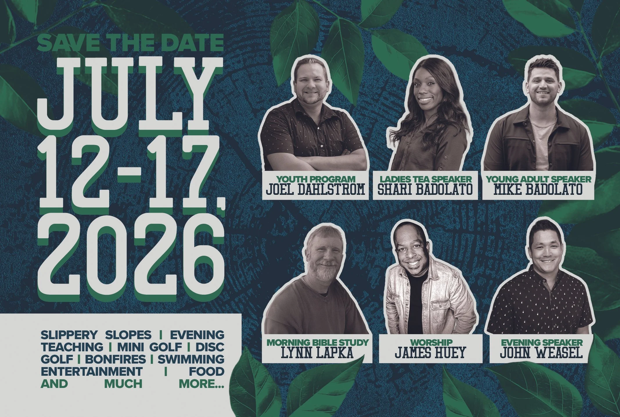 All registrations include an activities pass granting access to the pool, gym, fitness center, and mini golf course for the entire week of Family Camp. Each track registration is $15 per person until July 3, 2026. After July 3, registrations are available only at the door for $25.